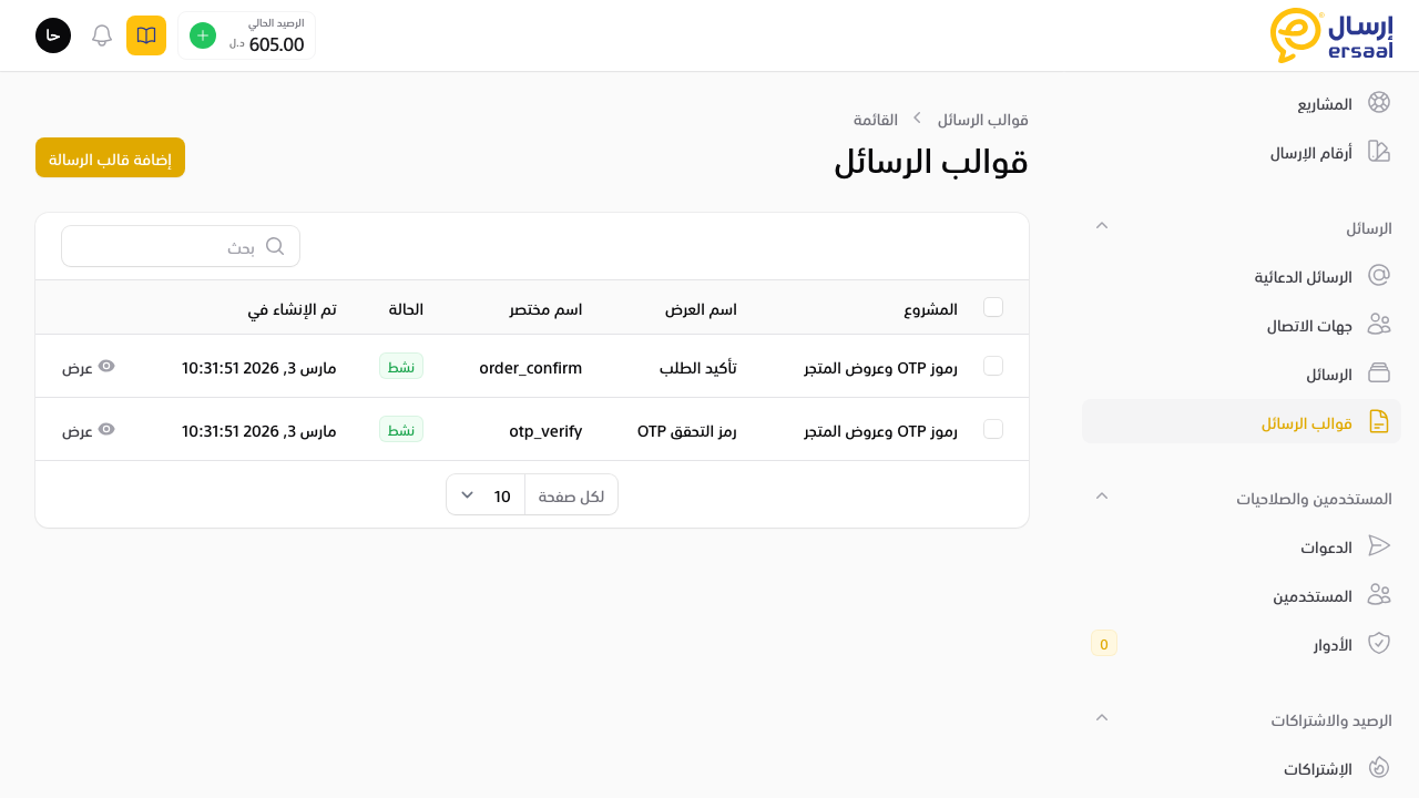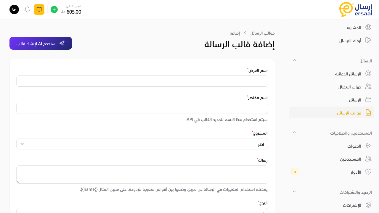 إنشاء وإدارة قوالب الرسائل الجاهزة للاستخدام عبر API في منصة إرسال